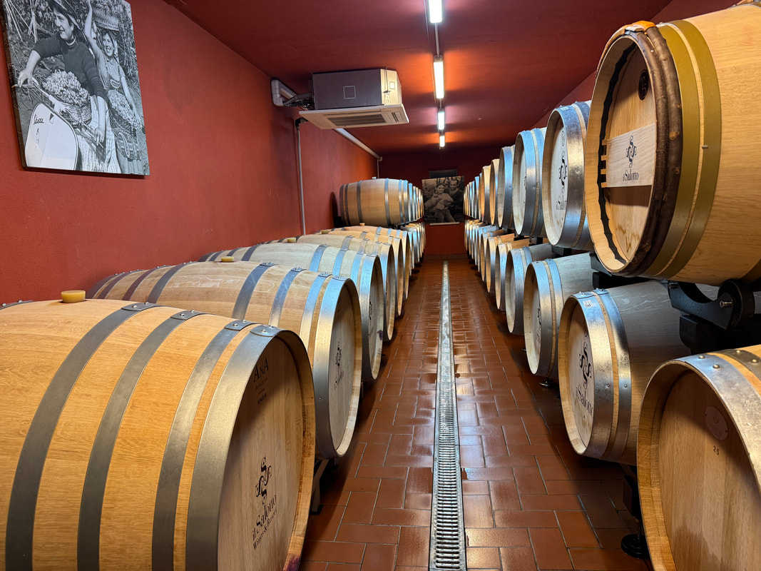 Damiano empfing uns herzlich und führte uns direkt in den Weinkeller. Wir starteten mit einer Fassprobe des erst vier Wochen im Ausbau befindlichen Sollievo DOC – einer Cuvée aus Viognier und Sémillon. Frisch, klar, aromatisch – erstaunlich präzise für dieses frühe Stadium. Anschliessend probierten wir einen Cabernet Sauvignon aus dem Fass. Was sich im Glas zeigte, war beeindruckend: Tiefe Aromen dunkler Schokolade – ein Wein mit grossem Potenzial.